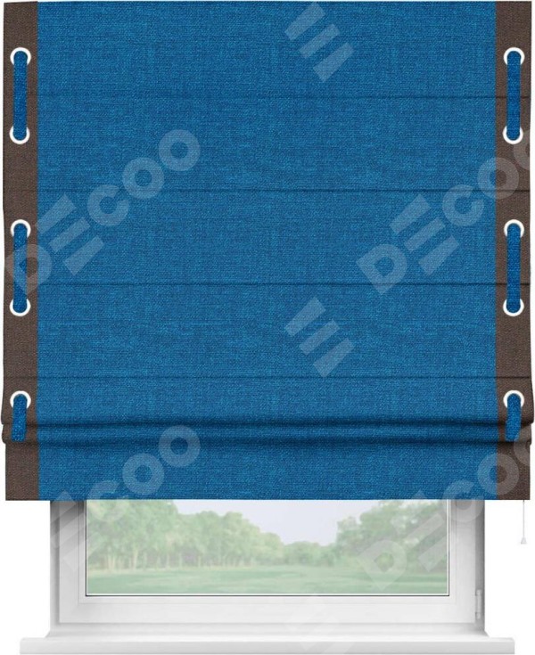 Римская штора «Кортин» с кантом Стрим Дуо (люверсы с пояском), для проема, ткань лён синий