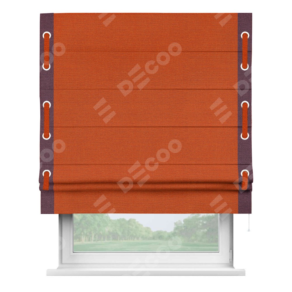 Римская штора «Кортин» с кантом Стрим Дуо (люверсы с пояском), для проема, ткань лён терракотовый