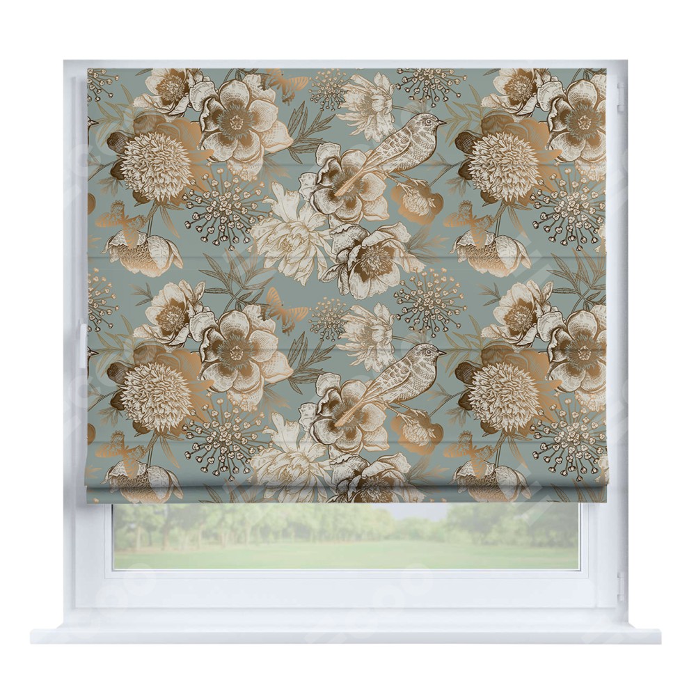 Римская штора производителя «Cortin», устанавливается на створку окна, пошита из ткани блэкаут с нанесением сублимационной печати «Садовые цветы». Штора шьётся по индивидуальным размерам, для данного типа римской шторы возможная ширина от 35 до 150 см., высота до 250 см.