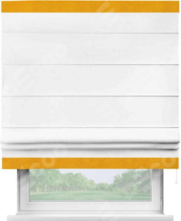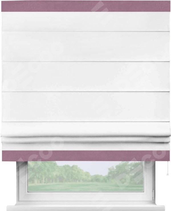 Римская штора «Кортин» с кантом Горизонт, для проема, ткань вельвет белоснежный