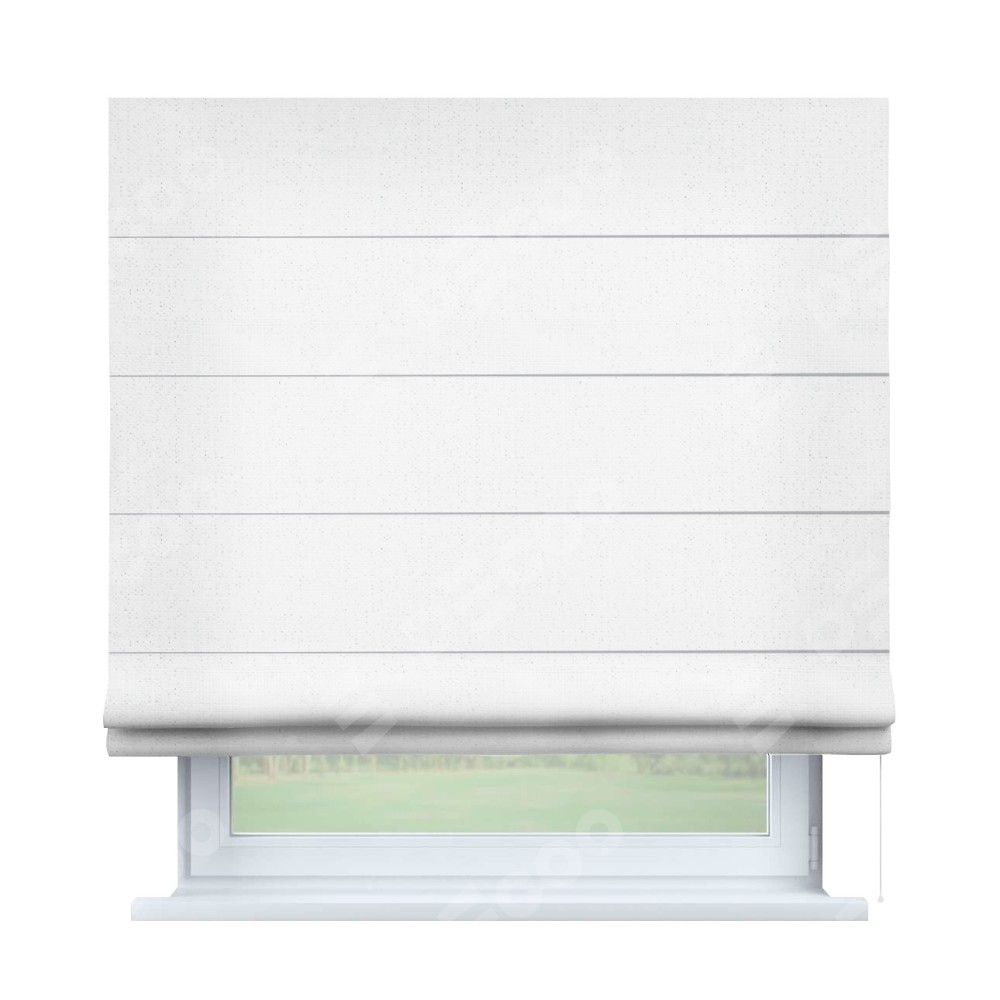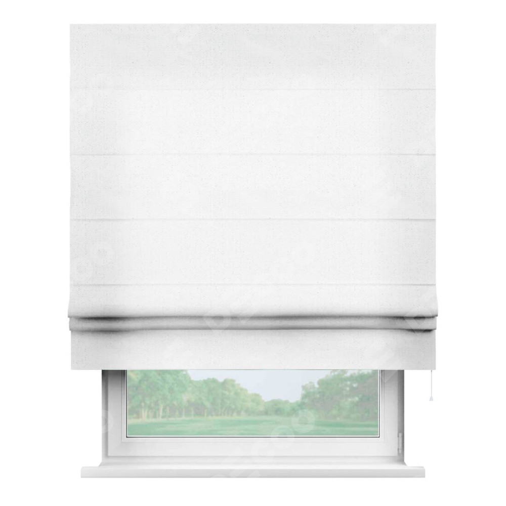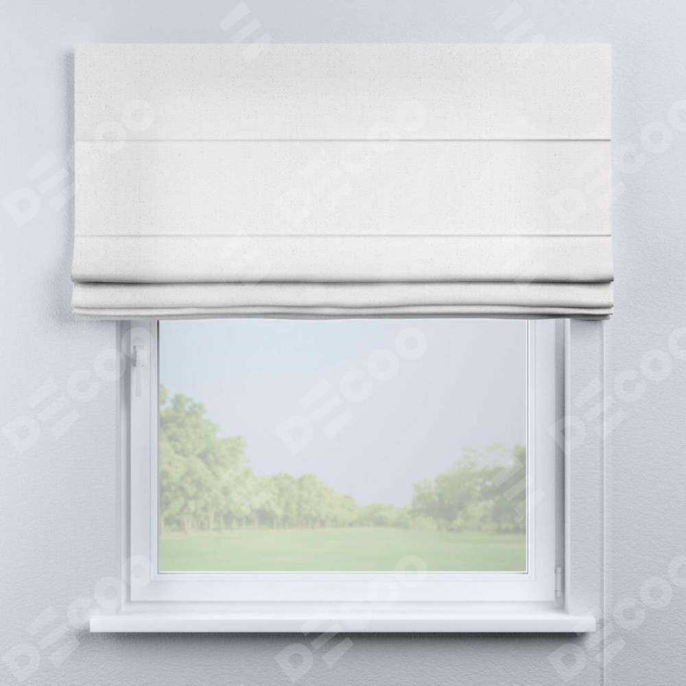 Римская штора от производителя «Cortin», используется для проёма, пошита из ткани лён белый, артикул ткани 7439. Имеет универсальный механизм и подходит для монтажа: на потолок, на стену и в нишу.