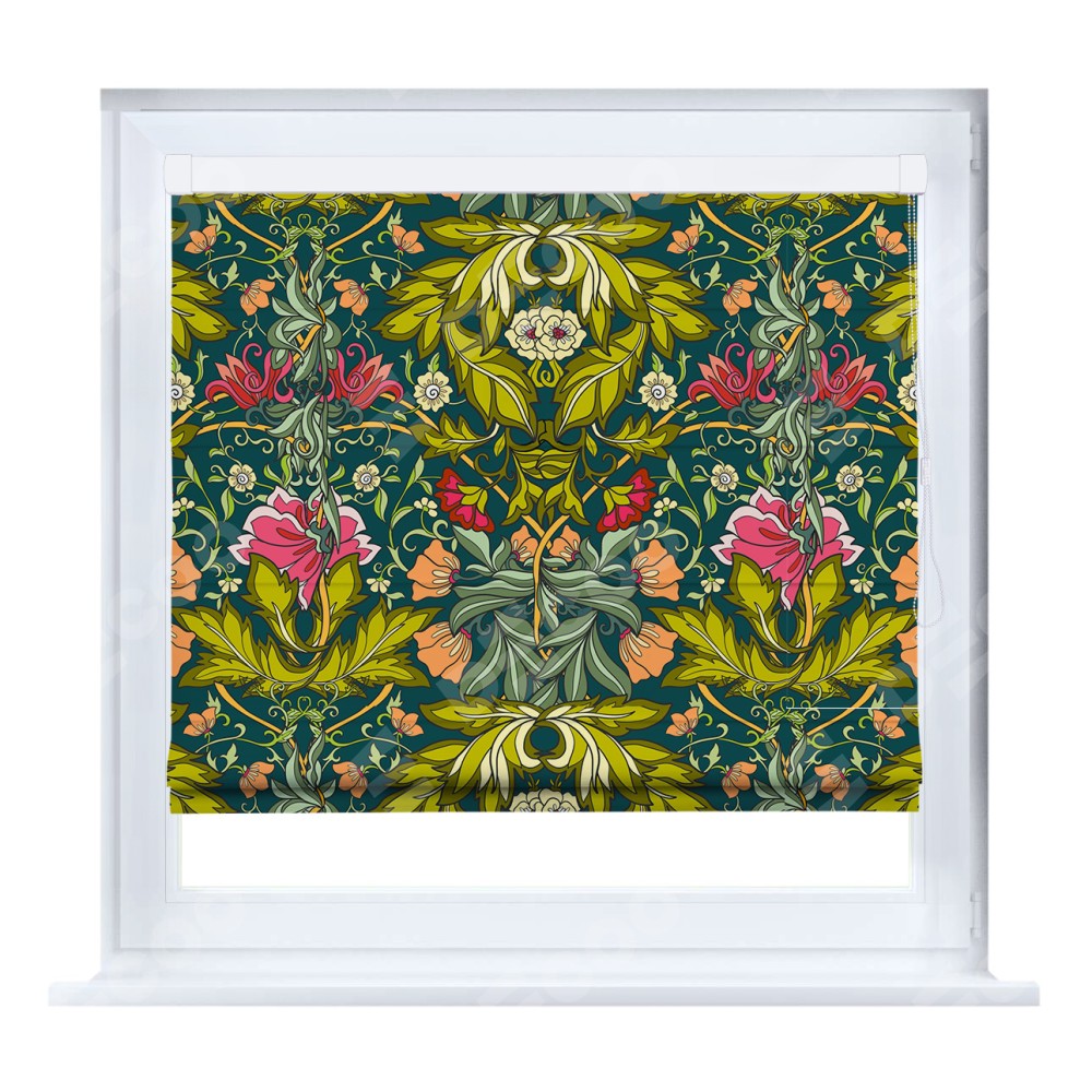 Римская штора производителя «Cortin», устанавливается на створку окна, пошита из ткани блэкаут с нанесением сублимационной печати «Цветок морриса». Штора шьётся по индивидуальным размерам, для данного типа римской шторы возможная ширина от 35 до 150 см., высота до 250 см.