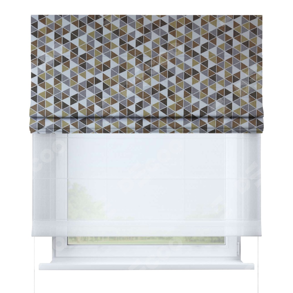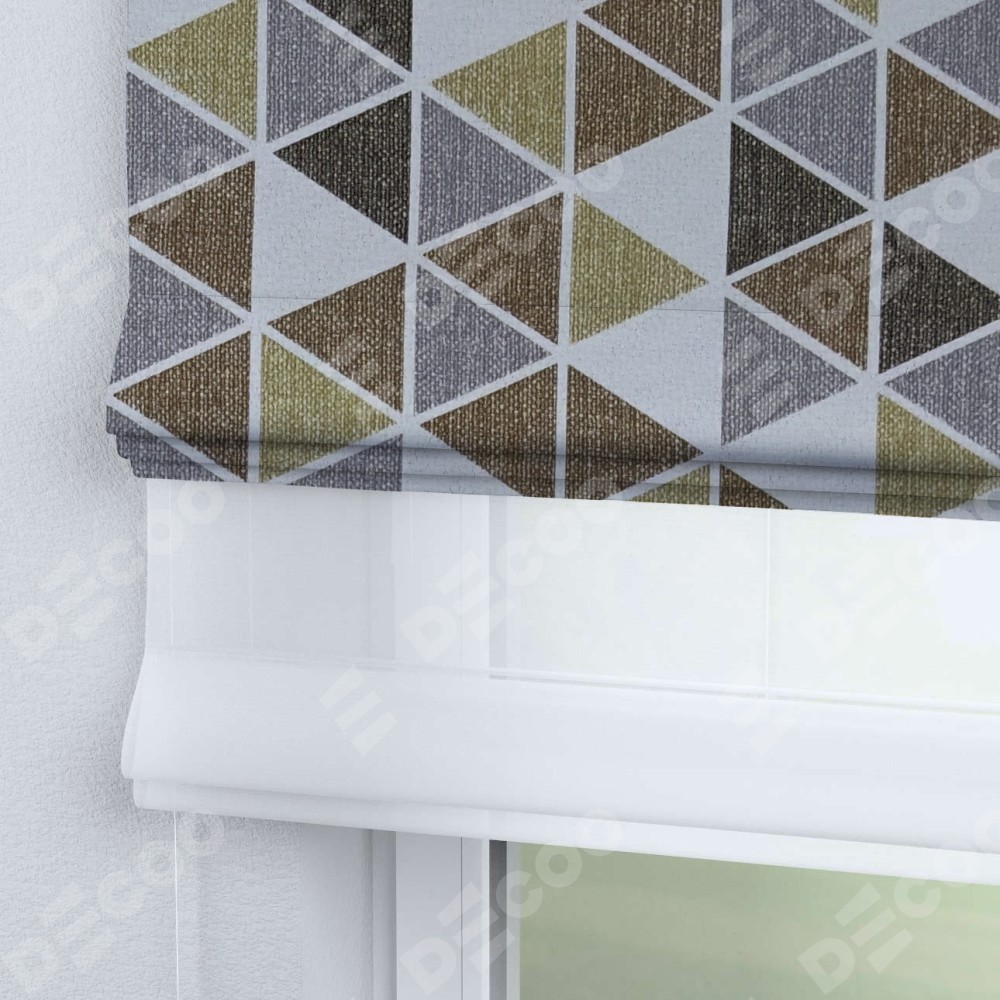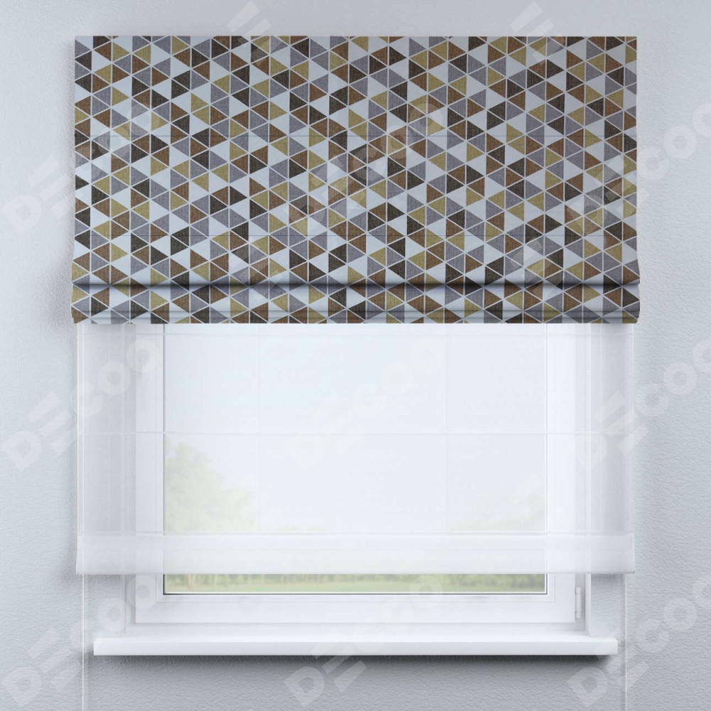 Римская штора «Кортин» день-ночь, ткань димаут «Треугольники коричневые»