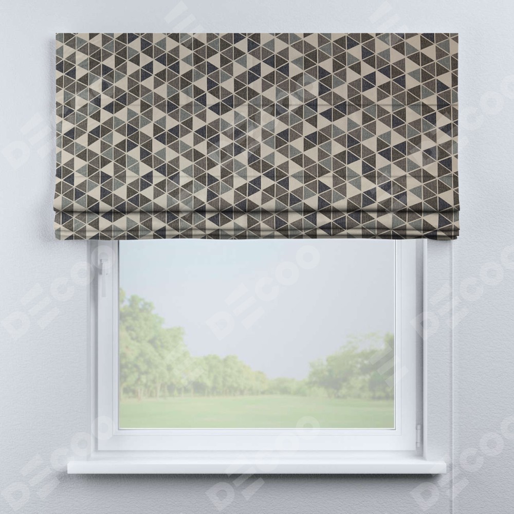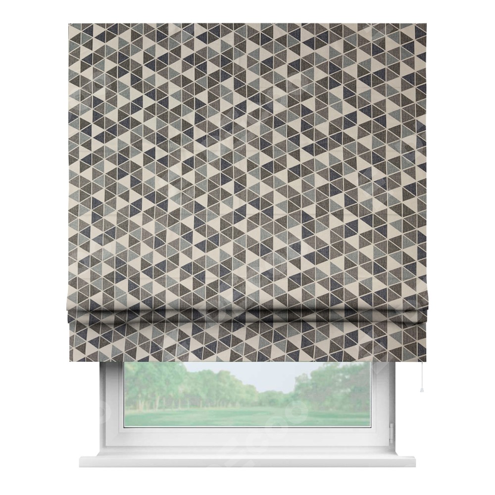 Римская штора «Кортин» для проема, ткань димаут «Треугольники синие»