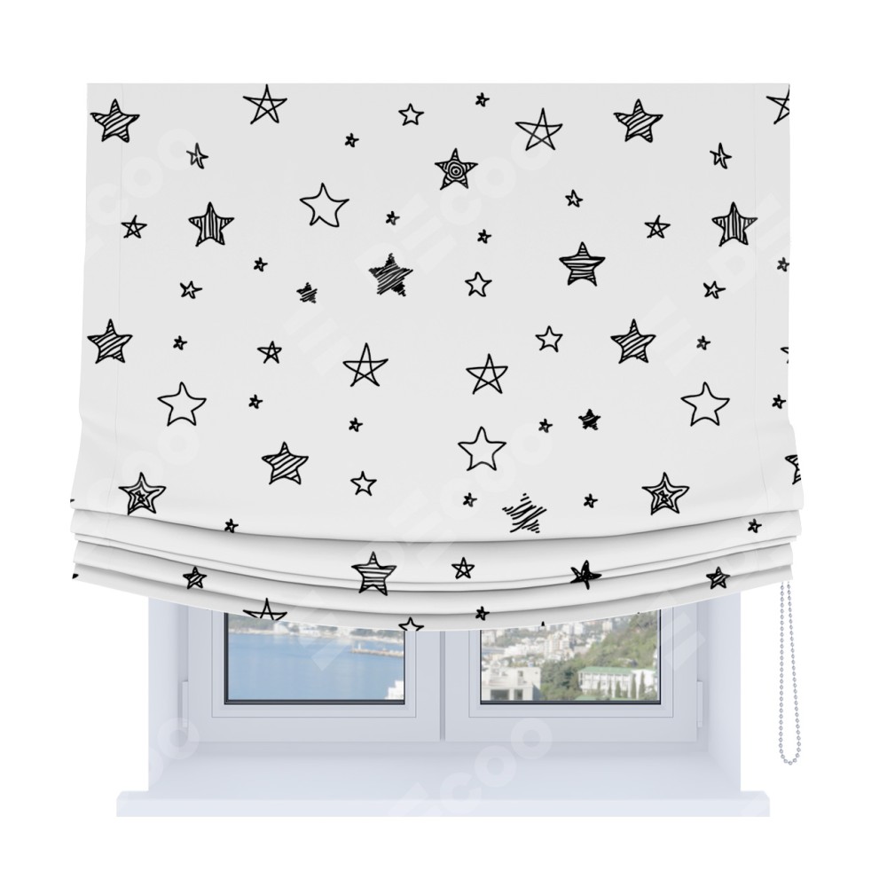 Римская штора Soft производителя «Cortin», используется для проёма, пошита из ткани блэкаут с нанесением сублимационной печати «Звёзды». Имеет универсальный механизм и подходит для монтажа: на потолок, на стену и в нишу. В отличие от стандартных римских штор, римская штора Soft не имеет горизонтальных вставок и нижнего отвеса. Это позволяет ткани произвольно драпироваться в свободные мягкие складки.