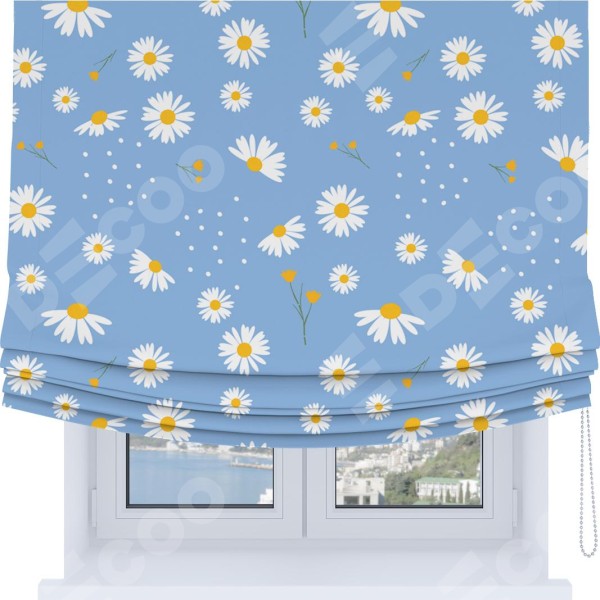 Римская штора Soft с мягкими складками, «Ромашки на голубом»