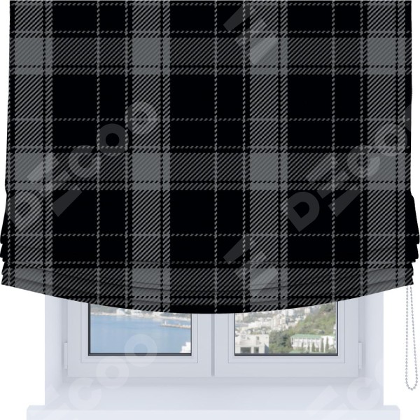 Римская штора Soft производителя «Cortin», используется для проёма, пошита из ткани блэкаут с нанесением сублимационной печати «Стильная клетка». Имеет универсальный механизм и подходит для монтажа: на потолок, на стену и в нишу. В отличие от стандартных римских штор, римская штора Soft не имеет горизонтальных вставок и нижнего отвеса. Это позволяет ткани произвольно драпироваться в свободные мягкие складки.