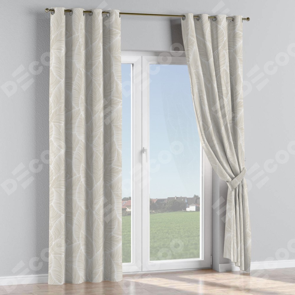 Комплект прямых штор, от производителя «Cortin», пошиты из ткани блэкаут с нанесением сублимационной печати «Бежевые листья». Данная модель пошита на люверсах, комплектуется на выбор круглым карнизом и подходит для монтажа на стену или потолок. Прямые шторы на люверсах шьются по стандарту с коэффициентом 1/2 (на 100 см. ширины проёма 200 см. ширины ткани), отличительным преимуществом данной модели является простой способ монтажа. Достаточно повесить ее на трубу и штора готова!