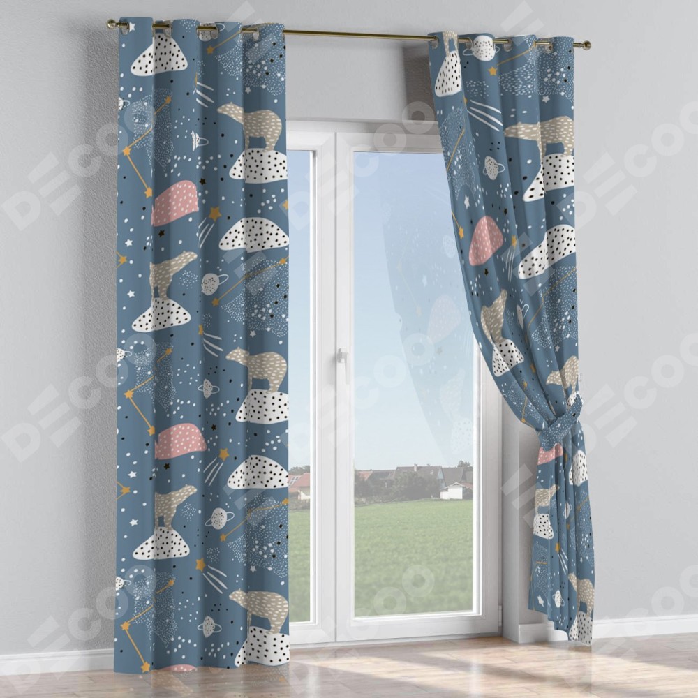 Комплект прямых штор, от производителя «Cortin», пошиты из ткани блэкаут с нанесением сублимационной печати «Белые медведи». Данная модель пошита на люверсах, комплектуется на выбор круглым карнизом и подходит для монтажа на стену или потолок. Прямые шторы на люверсах шьются по стандарту с коэффициентом 1/2 (на 100 см. ширины проёма 200 см. ширины ткани), отличительным преимуществом данной модели является простой способ монтажа. Достаточно повесить ее на трубу и штора готова!