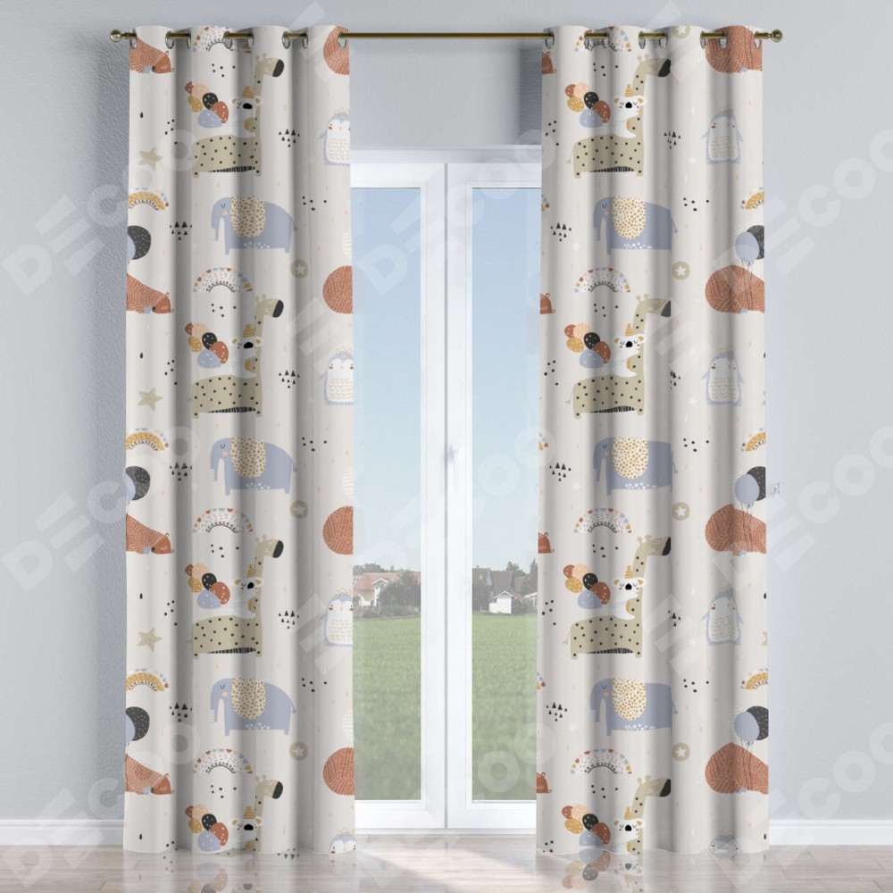 Комплект прямых штор, от производителя «Cortin», пошиты из ткани блэкаут с нанесением сублимационной печати «Вечеринка животных». Данная модель пошита на люверсах, комплектуется на выбор круглым карнизом и подходит для монтажа на стену или потолок. Прямые шторы на люверсах шьются по стандарту с коэффициентом 1/2 (на 100 см. ширины проёма 200 см. ширины ткани), отличительным преимуществом данной модели является простой способ монтажа. Достаточно повесить ее на трубу и штора готова!
