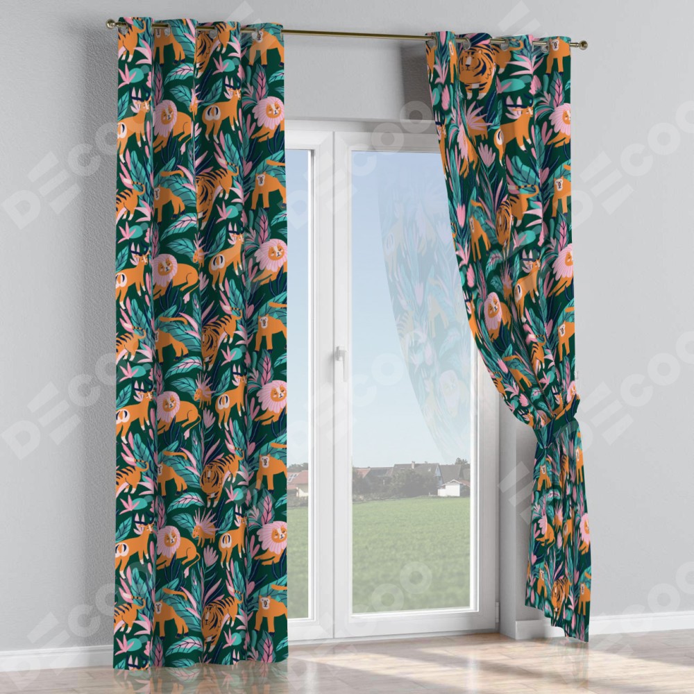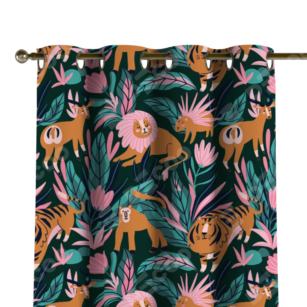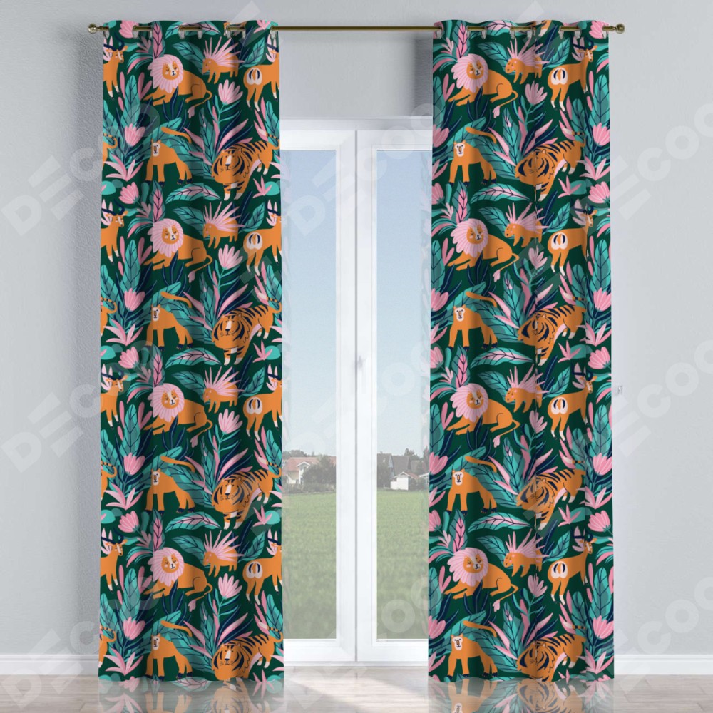 Комплект прямых штор, от производителя «Cortin», пошиты из ткани блэкаут с нанесением сублимационной печати «Дикие животные». Данная модель пошита на люверсах, комплектуется на выбор круглым карнизом и подходит для монтажа на стену или потолок. Прямые шторы на люверсах шьются по стандарту с коэффициентом 1/2 (на 100 см. ширины проёма 200 см. ширины ткани), отличительным преимуществом данной модели является простой способ монтажа. Достаточно повесить ее на трубу и штора готова!