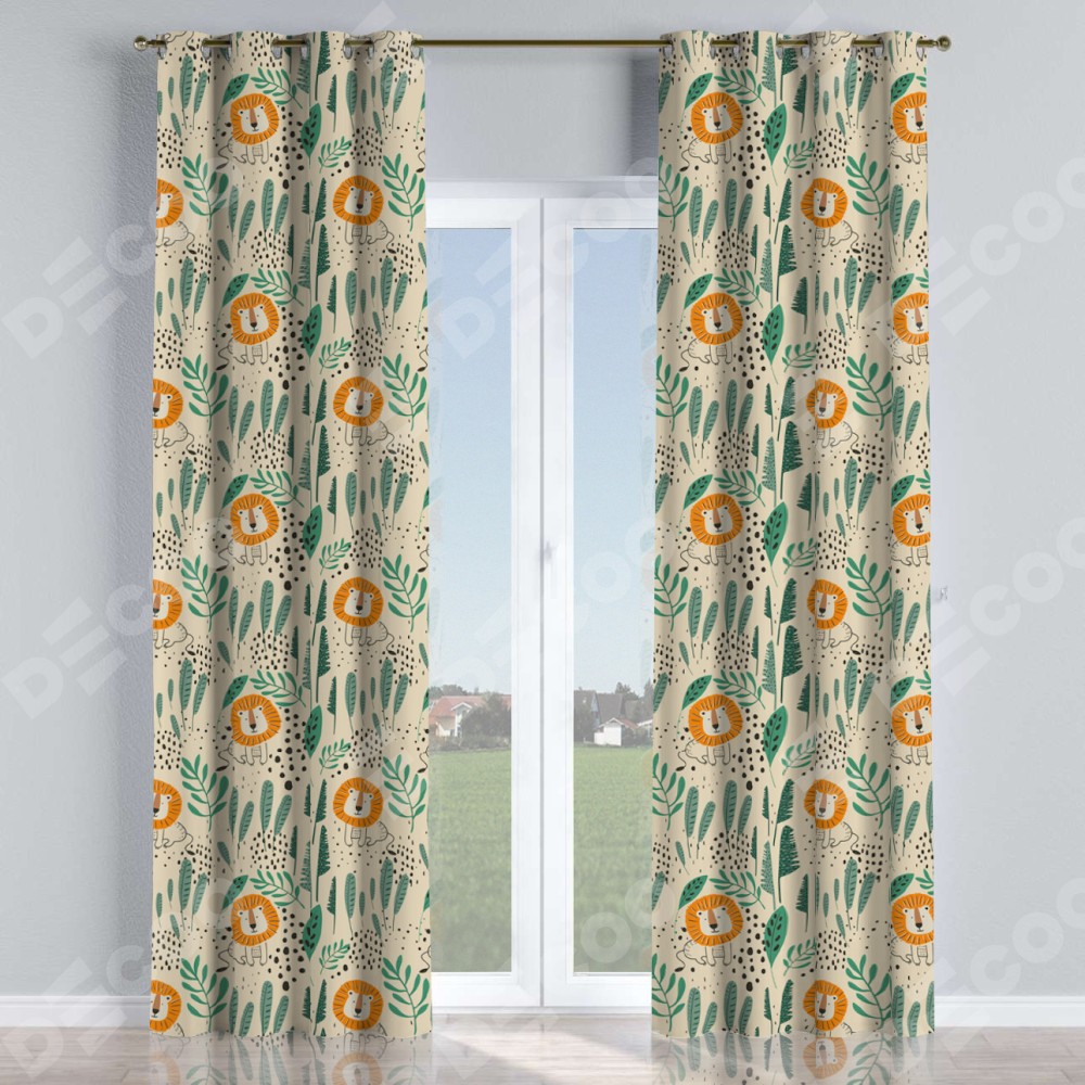 Комплект прямых штор, от производителя «Cortin», пошиты из ткани блэкаут с нанесением сублимационной печати «Лев из джунглей». Данная модель пошита на люверсах, комплектуется на выбор круглым карнизом и подходит для монтажа на стену или потолок. Прямые шторы на люверсах шьются по стандарту с коэффициентом 1/2 (на 100 см. ширины проёма 200 см. ширины ткани), отличительным преимуществом данной модели является простой способ монтажа. Достаточно повесить ее на трубу и штора готова!