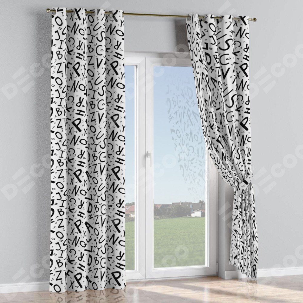 Комплект прямых штор, от производителя «Cortin», пошиты из ткани блэкаут с нанесением сублимационной печати «Литеры на белом». Данная модель пошита на люверсах, комплектуется на выбор круглым карнизом и подходит для монтажа на стену или потолок. Прямые шторы на люверсах шьются по стандарту с коэффициентом 1/2 (на 100 см. ширины проёма 200 см. ширины ткани), отличительным преимуществом данной модели является простой способ монтажа. Достаточно повесить ее на трубу и штора готова!