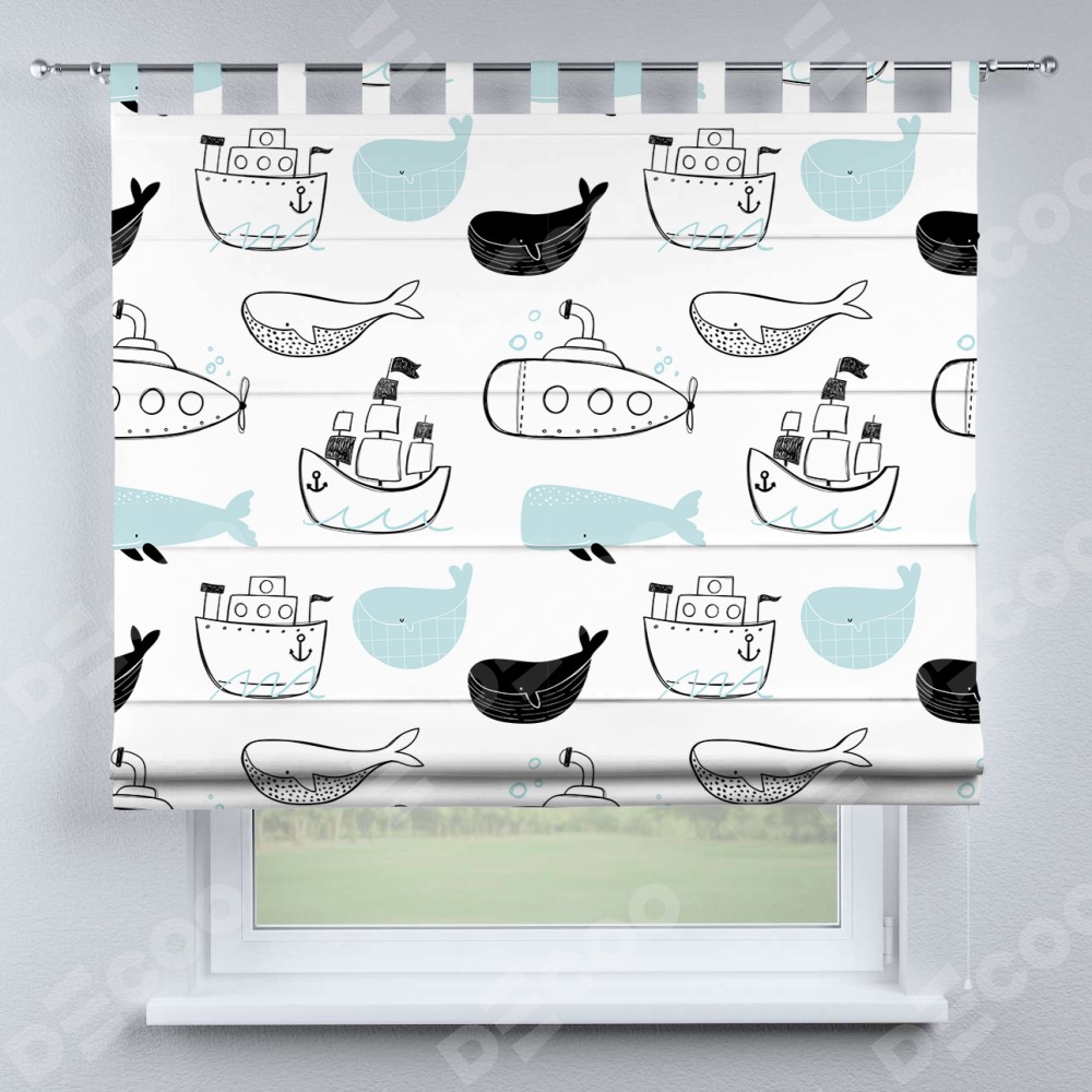 Римская штора производителя «Cortin», используется для проёма, пошита из ткани блэкаут с нанесением сублимационной печати «Морская прогулка». Данная модель пошита на петлях, комплектуется на выбор круглым карнизом и подходит для монтажа на стену. Римская штора на петлях имеет простую систему регулировки высоты, отличительным преимуществом данной модели является простой способ монтажа. Достаточно повесить ее на трубу и штора готова!