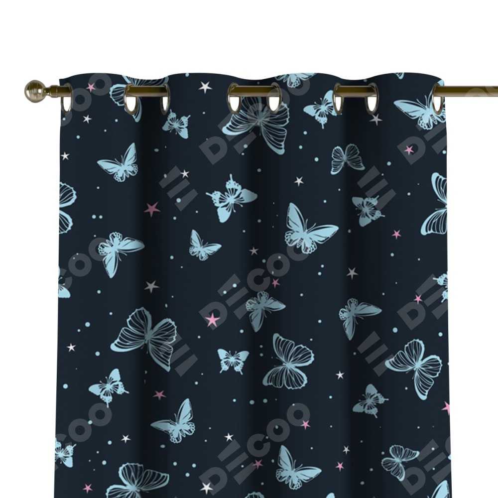 Комплект прямых штор, от производителя «Cortin», пошиты из ткани блэкаут с нанесением сублимационной печати «Неоновые бабочки». Данная модель пошита на люверсах, комплектуется на выбор круглым карнизом и подходит для монтажа на стену или потолок. Прямые шторы на люверсах шьются по стандарту с коэффициентом 1/2 (на 100 см. ширины проёма 200 см. ширины ткани), отличительным преимуществом данной модели является простой способ монтажа. Достаточно повесить ее на трубу и штора готова!