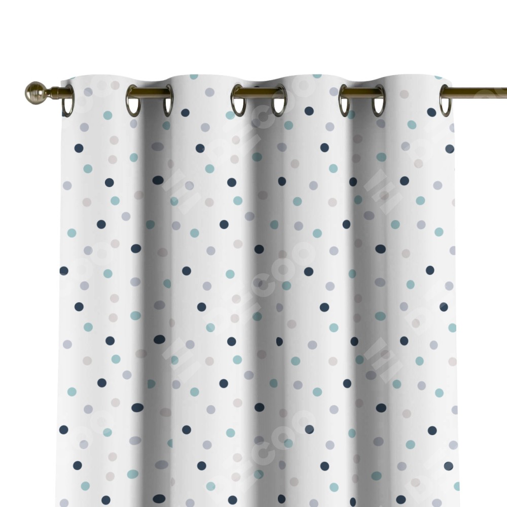 Комплект прямых штор, от производителя «Cortin», пошиты из ткани блэкаут с нанесением сублимационной печати «Точки». Данная модель пошита на люверсах, комплектуется на выбор круглым карнизом и подходит для монтажа на стену или потолок. Прямые шторы на люверсах шьются по стандарту с коэффициентом 1/2 (на 100 см. ширины проёма 200 см. ширины ткани), отличительным преимуществом данной модели является простой способ монтажа. Достаточно повесить ее на трубу и штора готова!