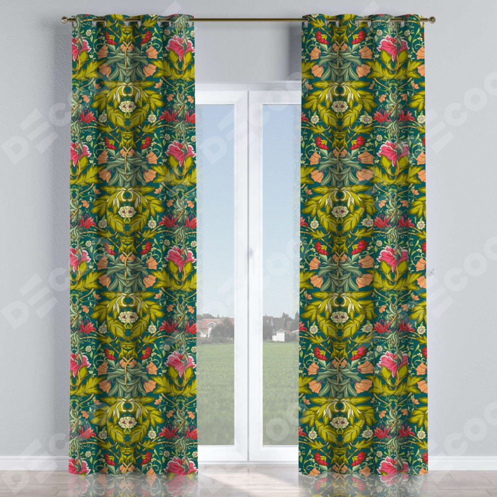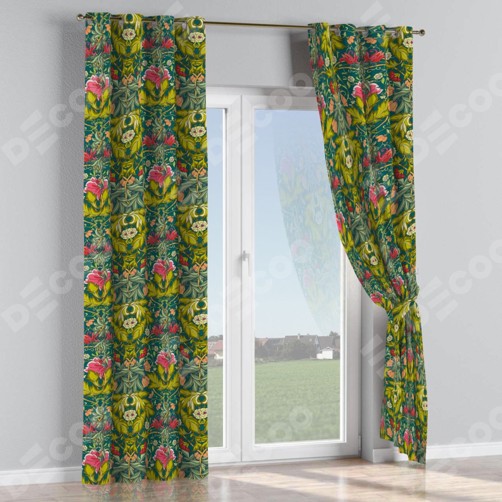 Комплект прямых штор, от производителя «Cortin», пошиты из ткани блэкаут с нанесением сублимационной печати «Цветок морриса». Данная модель пошита на люверсах, комплектуется на выбор круглым карнизом и подходит для монтажа на стену или потолок. Прямые шторы на люверсах шьются по стандарту с коэффициентом 1/2 (на 100 см. ширины проёма 200 см. ширины ткани), отличительным преимуществом данной модели является простой способ монтажа. Достаточно повесить ее на трубу и штора готова!