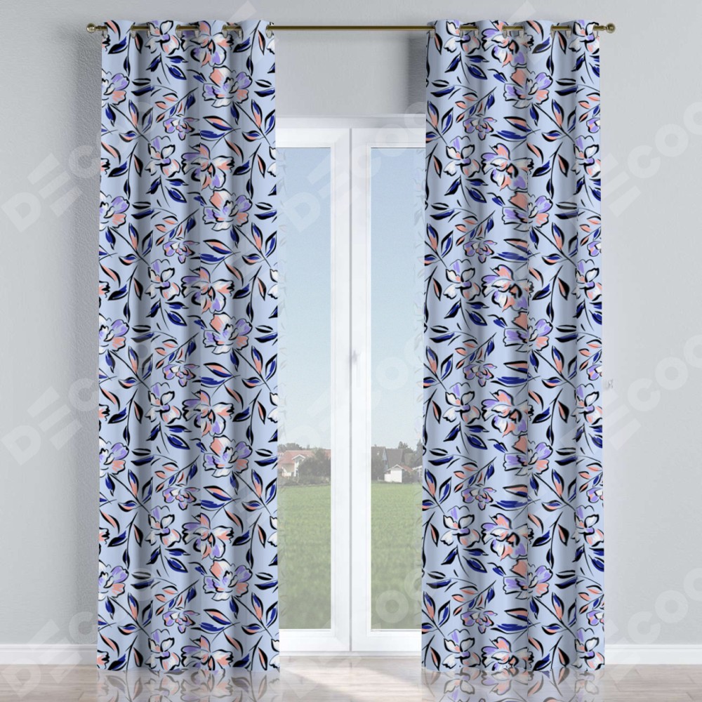 Комплект прямых штор, от производителя «Cortin», пошиты из ткани блэкаут с нанесением сублимационной печати «Цветочки и листочки». Данная модель пошита на люверсах, комплектуется на выбор круглым карнизом и подходит для монтажа на стену или потолок. Прямые шторы на люверсах шьются по стандарту с коэффициентом 1/2 (на 100 см. ширины проёма 200 см. ширины ткани), отличительным преимуществом данной модели является простой способ монтажа. Достаточно повесить ее на трубу и штора готова!