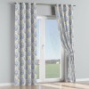 Длина карниза равна ширине окна плюс 30 — 50 см. При расчете длины штанги наконечники не учитываются. Для определения высоты штор измерьте расстояние от верхнего края карниза до пола и отнимите 1 см. Прибавьте 4 см  (гребешок над люверсом) Это габаритный размер вашего изделия.