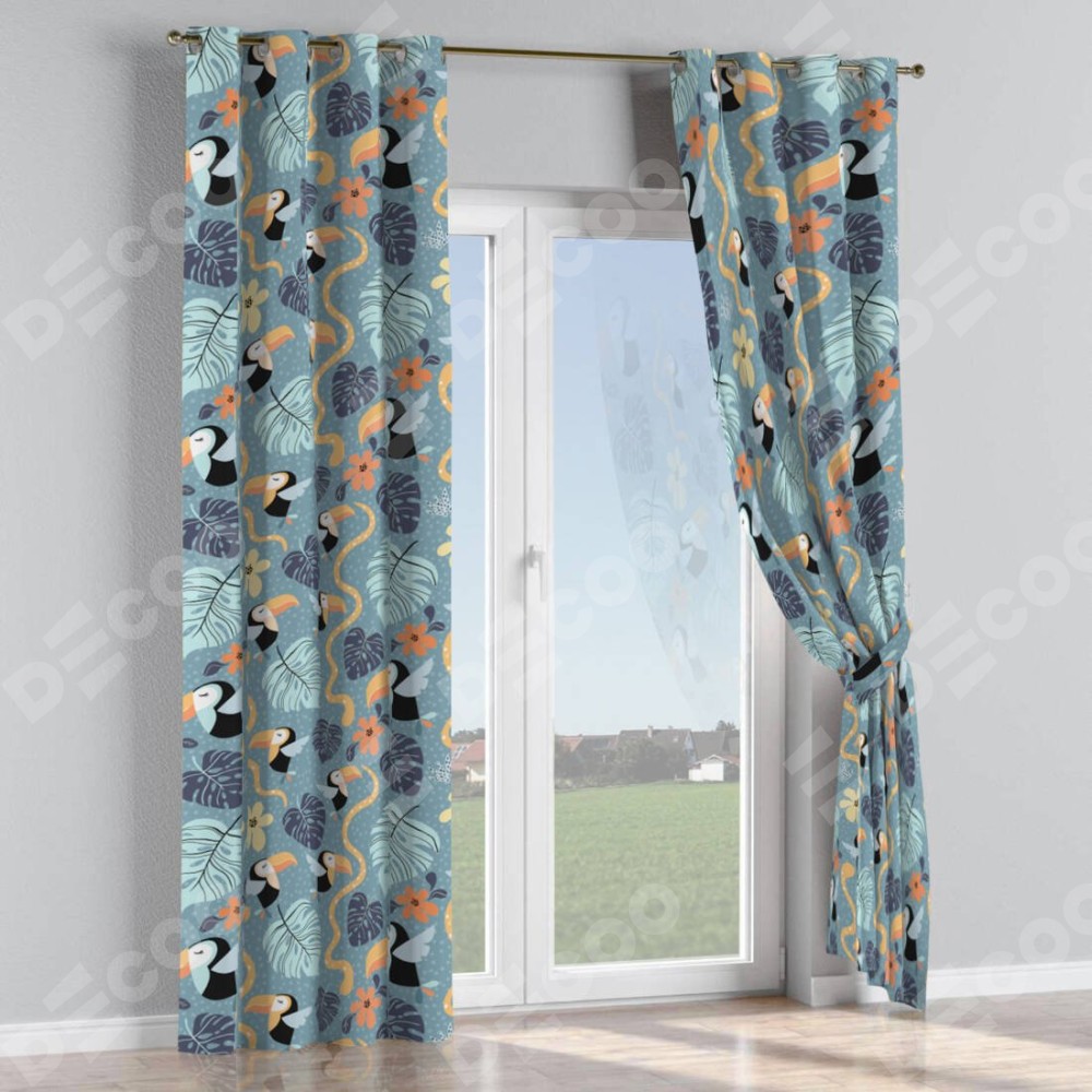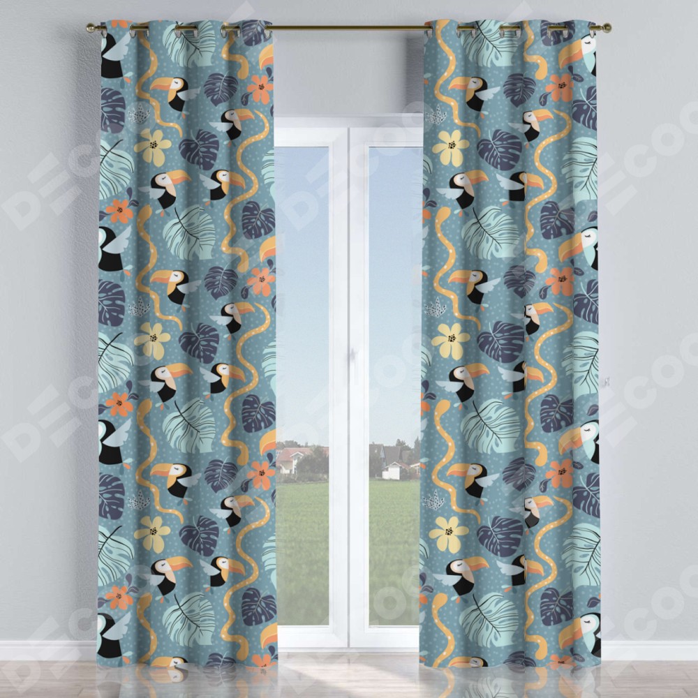 Комплект прямых штор, от производителя «Cortin», пошиты из ткани блэкаут с нанесением сублимационной печати «Экзотические птицы». Данная модель пошита на люверсах, комплектуется на выбор круглым карнизом и подходит для монтажа на стену или потолок. Прямые шторы на люверсах шьются по стандарту с коэффициентом 1/2 (на 100 см. ширины проёма 200 см. ширины ткани), отличительным преимуществом данной модели является простой способ монтажа. Достаточно повесить ее на трубу и штора готова!