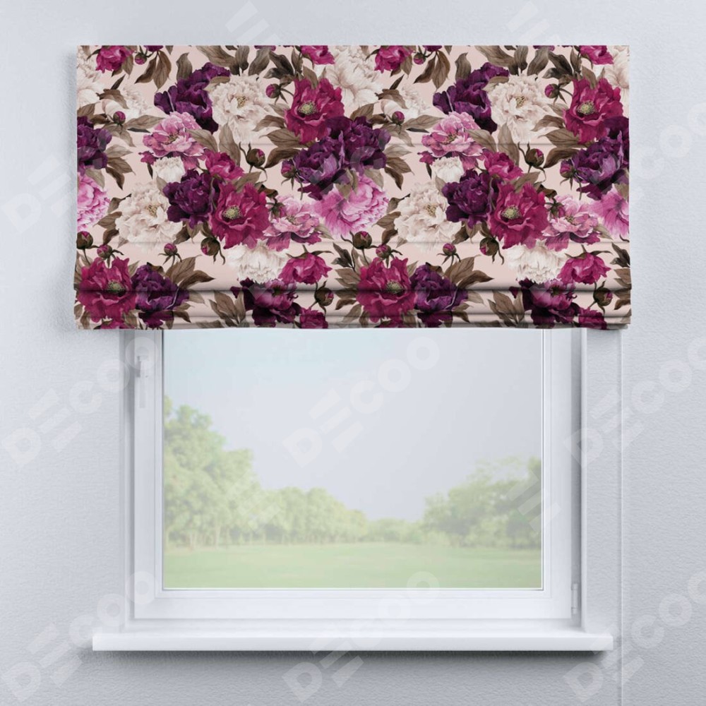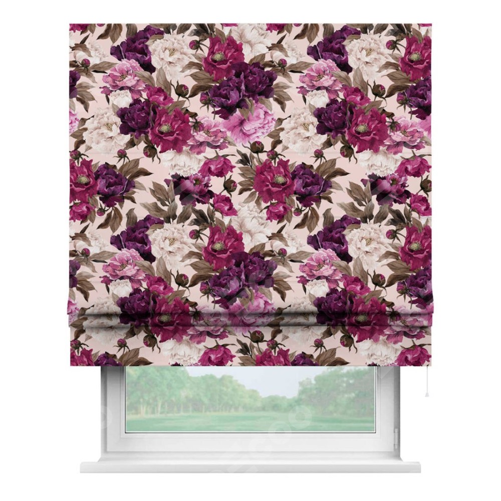 Римская штора «Кортин» для проема «Великолепные пионы»