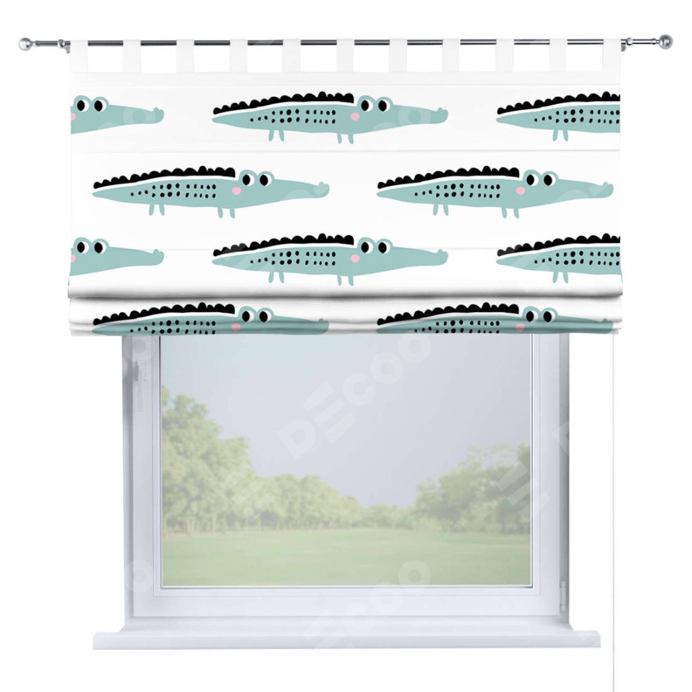 Римская штора производителя «Cortin», используется для проёма, пошита из ткани блэкаут с нанесением сублимационной печати «Мистер Крок». Данная модель пошита на петлях, комплектуется на выбор круглым карнизом и подходит для монтажа на стену. Римская штора на петлях имеет простую систему регулировки высоты, отличительным преимуществом данной модели является простой способ монтажа. Достаточно повесить ее на трубу и штора готова!