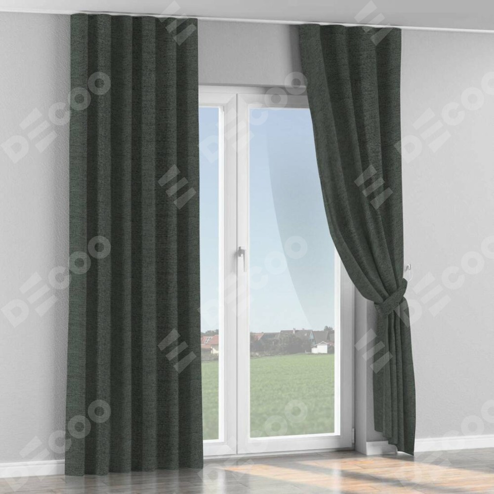 Комплект прямых штор, от производителя «Cortin», пошиты из ткани стиф димаут графит, артикул ткани 44026. С изнаночной стороны в верхней части штор пристрачивается шторная лента с декоративными складками «Волна». Для создания элегантных складок прямые шторы шьются по стандарту с коэффициентом 1:2 (на 100 см. ширины проёма 200 см. ширины ткани).