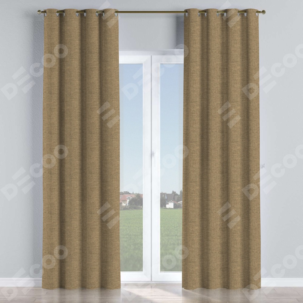 Комплект прямых штор, от производителя «Cortin», пошиты из ткани стиф димаут тёмно-бежевый, артикул ткани 18085. Данная модель пошита на люверсах, комплектуется на выбор круглым карнизом и подходит для монтажа на стену или потолок. Прямые шторы на люверсах шьются по стандарту с коэффициентом 1/2 (на 100 см. ширины проёма 200 см. ширины ткани), отличительным преимуществом данной модели является простой способ монтажа. Достаточно повесить ее на трубу и штора готова!