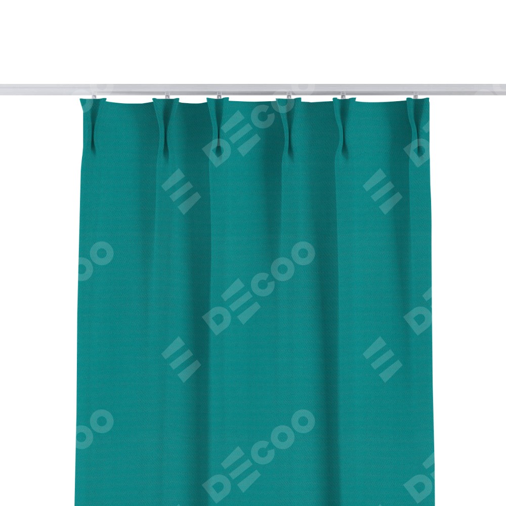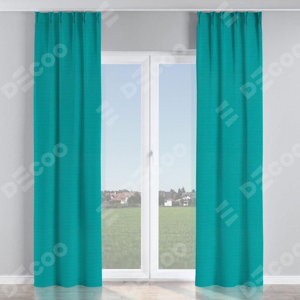 Комплект прямых штор, от производителя «Cortin», пошиты из ткани блэкаут однотонный бирюзовый, артикул ткани 88297. С изнаночной стороны в верхней части штор пристрачивается шторная лента с декоративными складками «Кустик». Для создания элегантных складок прямые шторы шьются по стандарту с коэффициентом 1:2 (на 100 см. ширины проёма 200 см. ширины ткани).