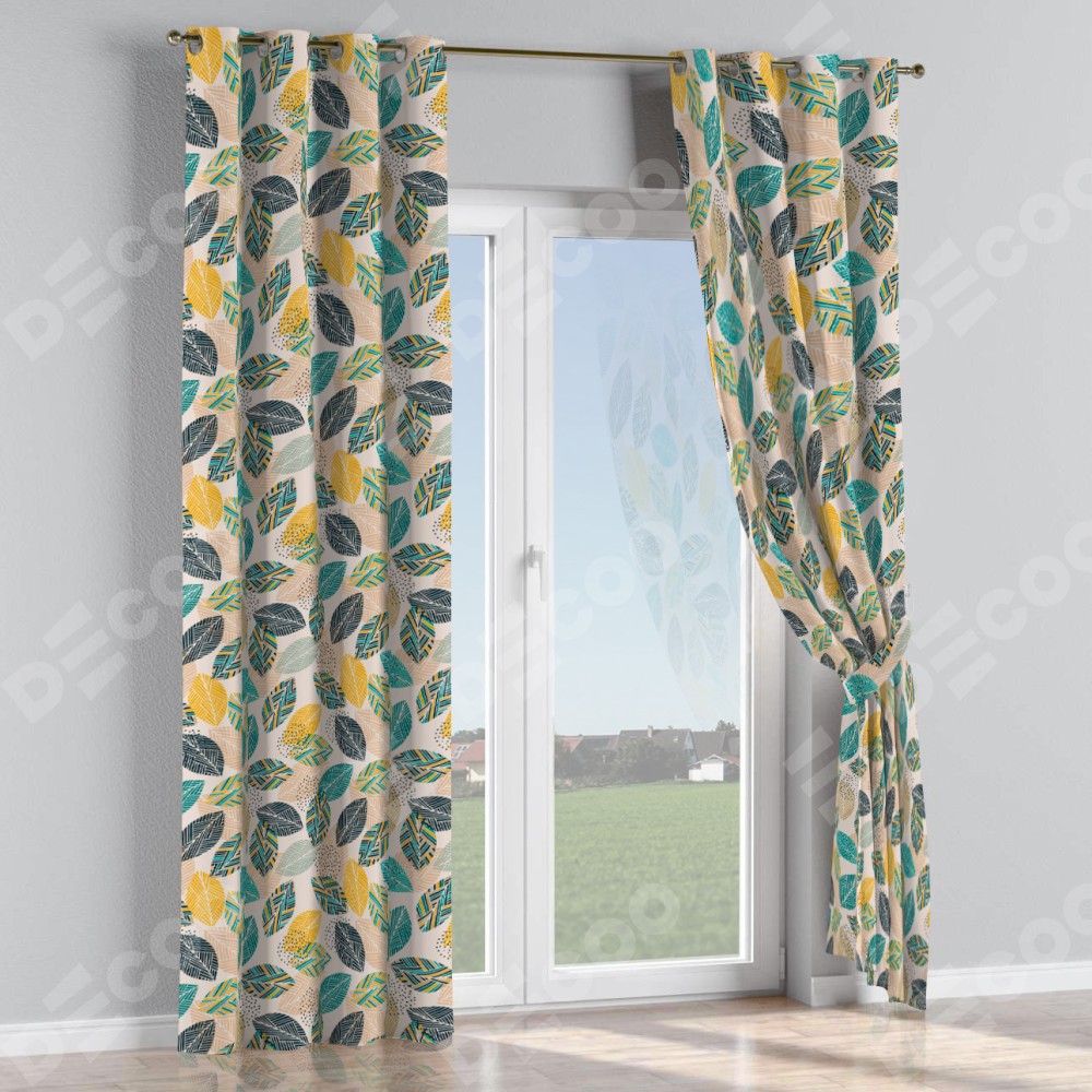 Комплект прямых штор, от производителя «Cortin», пошиты из ткани блэкаут с нанесением сублимационной печати «Листья с орнаментом». Данная модель пошита на люверсах, комплектуется на выбор круглым карнизом и подходит для монтажа на стену или потолок. Прямые шторы на люверсах шьются по стандарту с коэффициентом 1/2 (на 100 см. ширины проёма 200 см. ширины ткани), отличительным преимуществом данной модели является простой способ монтажа. Достаточно повесить ее на трубу и штора готова!