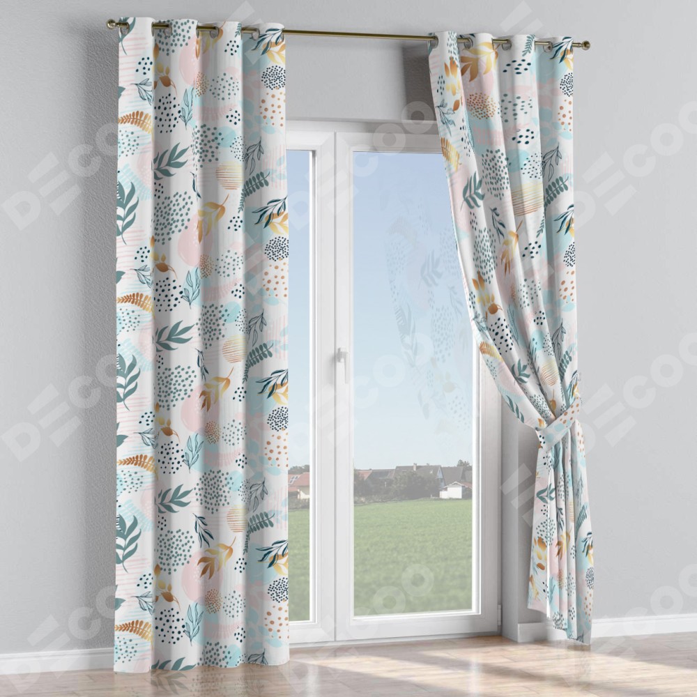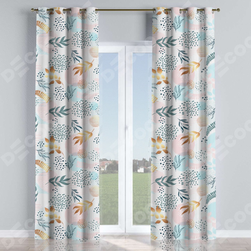 Комплект прямых штор, от производителя «Cortin», пошиты из ткани блэкаут с нанесением сублимационной печати «Точки и листочки». Данная модель пошита на люверсах, комплектуется на выбор круглым карнизом и подходит для монтажа на стену или потолок. Прямые шторы на люверсах шьются по стандарту с коэффициентом 1/2 (на 100 см. ширины проёма 200 см. ширины ткани), отличительным преимуществом данной модели является простой способ монтажа. Достаточно повесить ее на трубу и штора готова!
