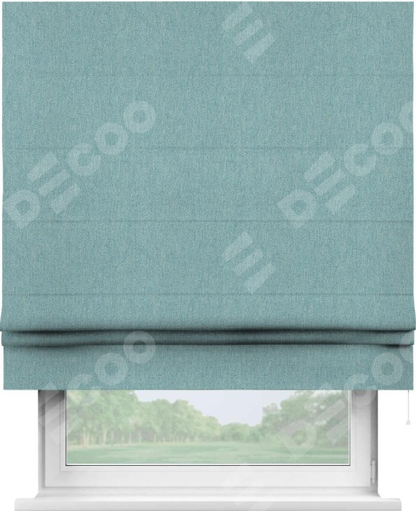 Римская штора «Кортин» для проема, ткань твид блэкаут, небесно-голубой
