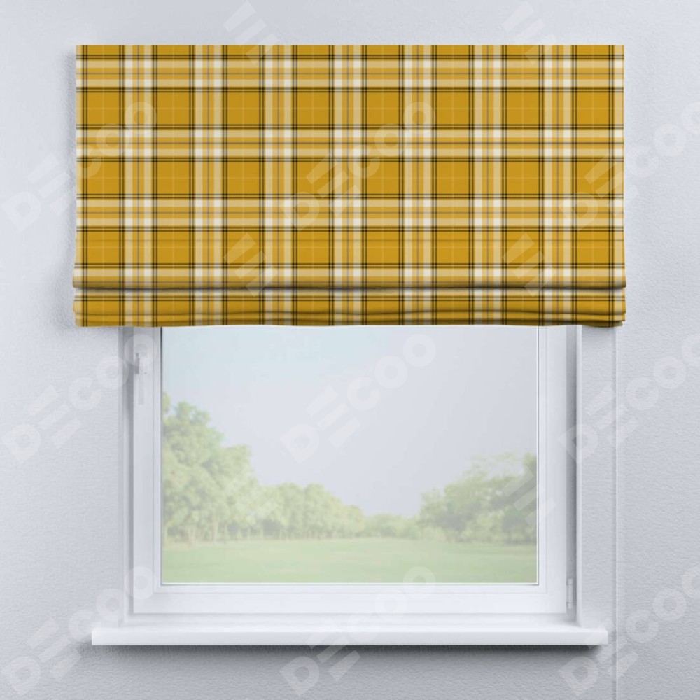 Римская штора «Кортин» для проема «Желто-горчичная клетка»