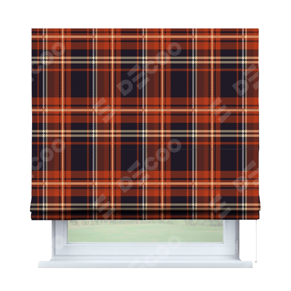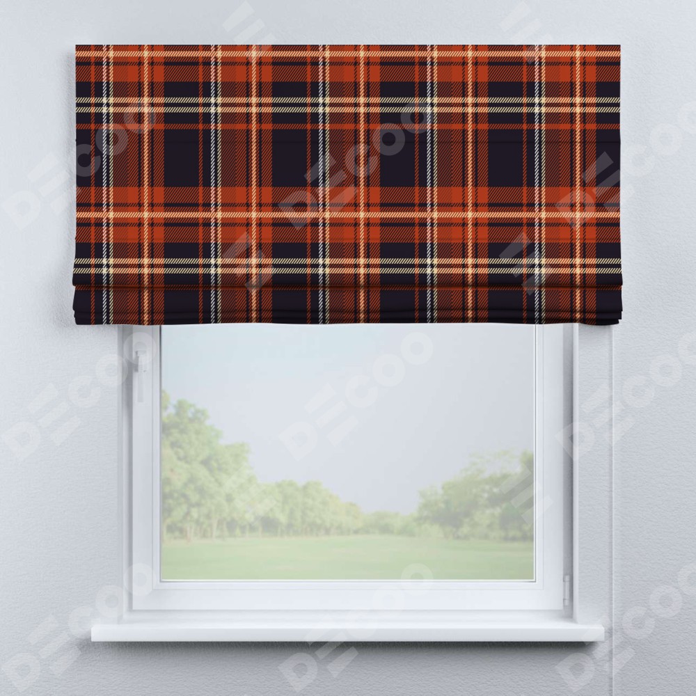Римская штора «Кортин» для проема «Сине-оранжевая клетка»