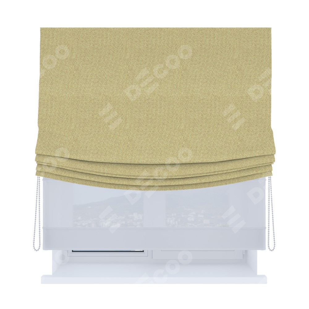 Римская штора день-ночь производителя «Cortin», используется для проёма, пошита из двух полотен, с лицевой стороны лён димаут песочный артикул 16239, вторая ткань тюль (по стандарту комплектуется тюль белого цвета артикул V-01). Имеет универсальный механизм и подходит для монтажа: на потолок, на стену и в нишу. Удобное управление каждой шторой отдельно.