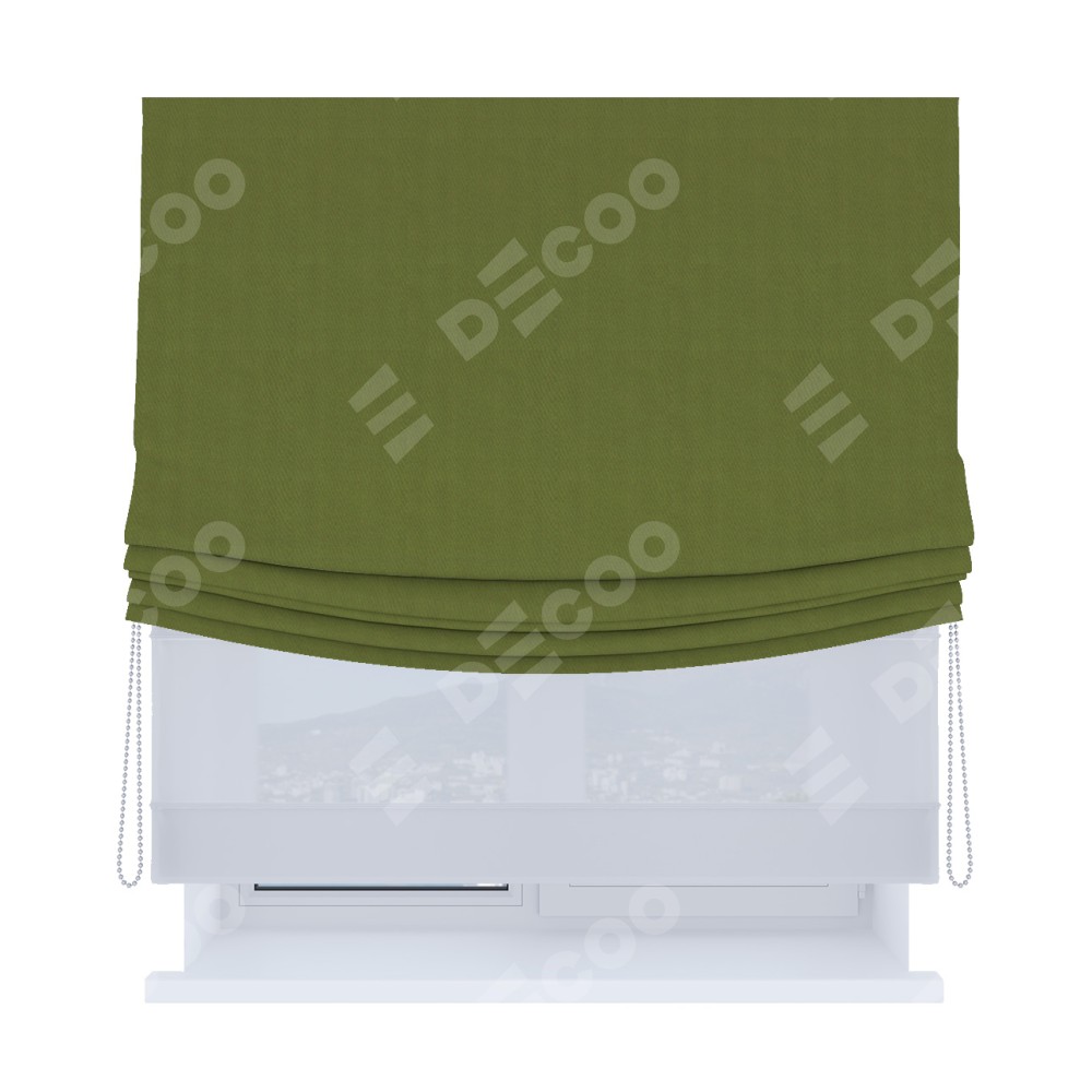 Римская штора «Кортин», день-ночь с мягкими складками, блэкаут однотонный цвет оливковый