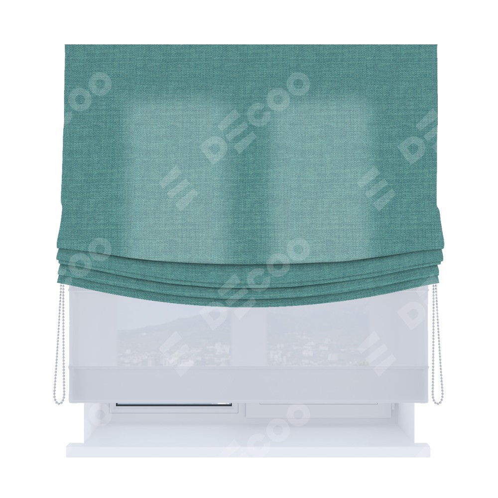 Римская штора день-ночь (двойная) от производителя «Cortin», используется для проёма. Пошита из двух полотен, основная ткань лён бирюза артикул 7446, вторая ткань тюль (по стандарту используется тюль белого цвета артикул V-01). Имеет универсальный механизм и подходит для монтажа: на потолок, на стену и в нишу. Удобное управление каждой шторой отдельно.