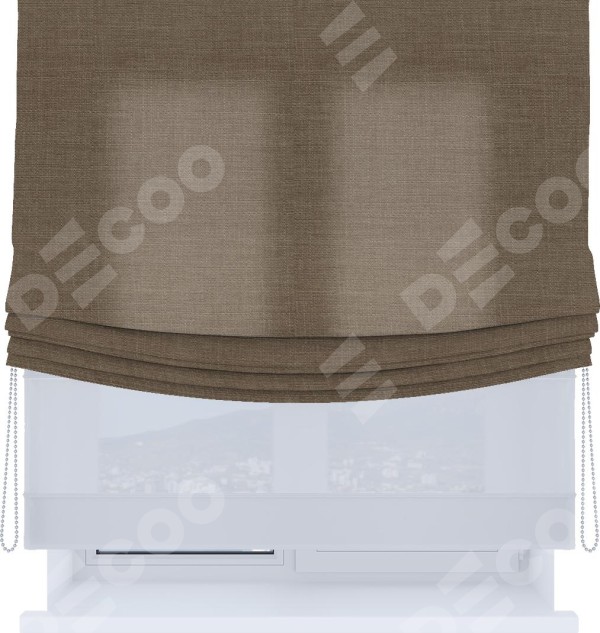 Римская штора день-ночь (двойная) от производителя «Cortin», используется для проёма. Пошита из двух полотен, основная ткань лён мокко артикул 7444, вторая ткань тюль (по стандарту используется тюль белого цвета артикул V-01). Имеет универсальный механизм и подходит для монтажа: на потолок, на стену и в нишу. Удобное управление каждой шторой отдельно.