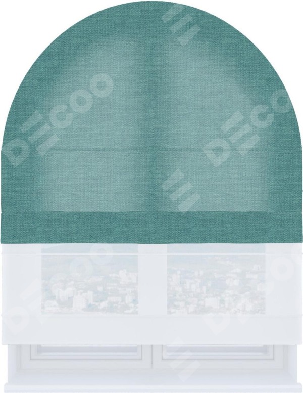 Римская штора день-ночь производителя «Cortin», используется для арочного проёма, пошита из двух полотен, с лицевой стороны лён бирюза артикул 7446, вторая ткань тюль (по стандарту комплектуется тюль белого цвета артикул V-01). Штора шьётся по индивидуальным размерам, для данного типа римской шторы возможная ширина от 60 до 300 см. Удобное управление каждой шторой отдельно.