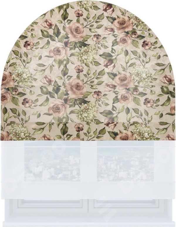 Римская штора «Кортин» день-ночь для арочного проёма, ткань «Розы бежевые»