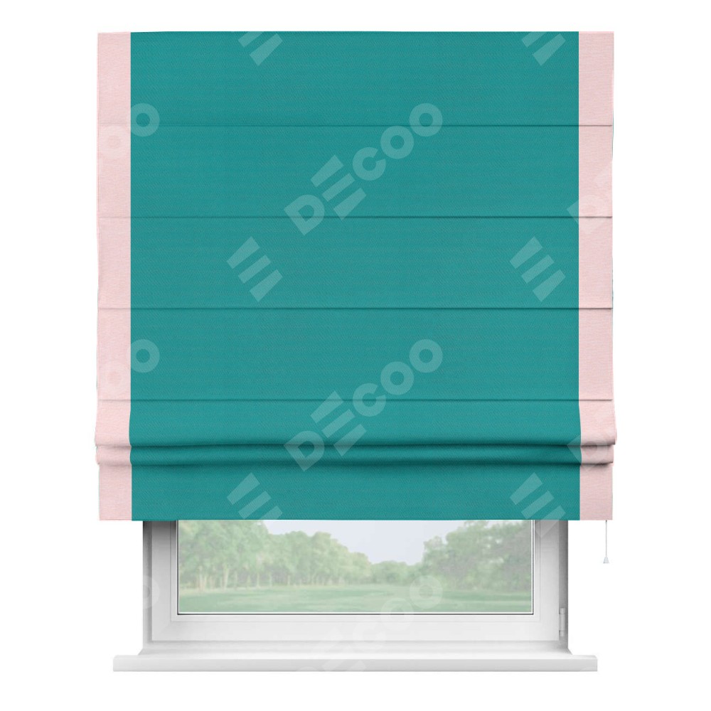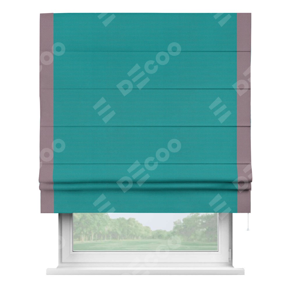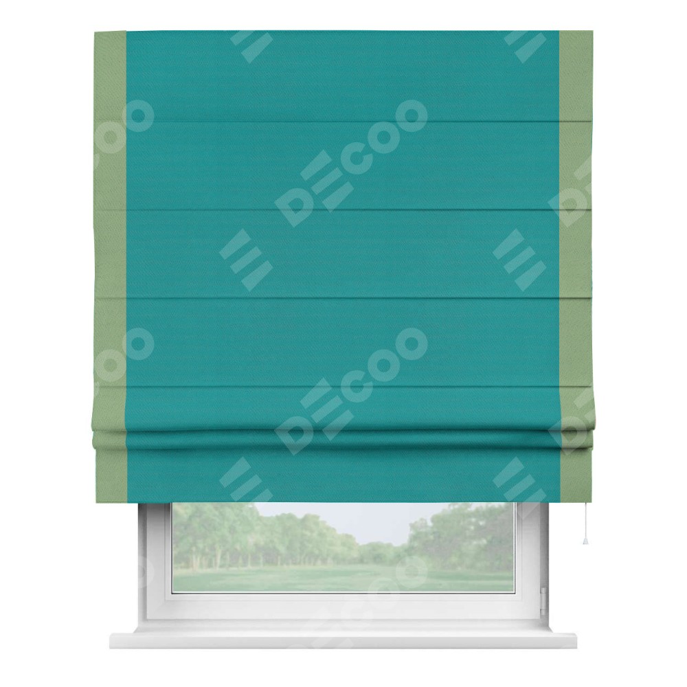 Римская штора «Кортин» с кантом Стрим Дуо, для проема, ткань блэкаут однотонный бирюзовый