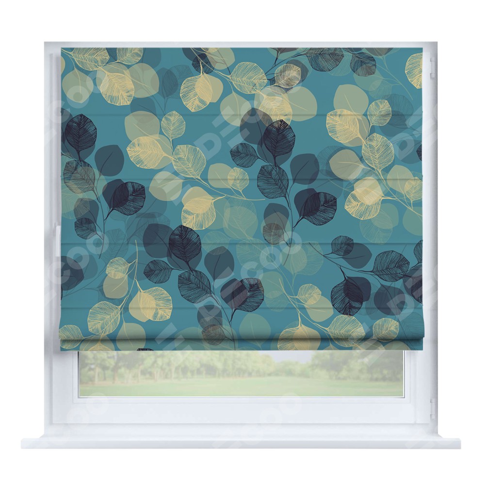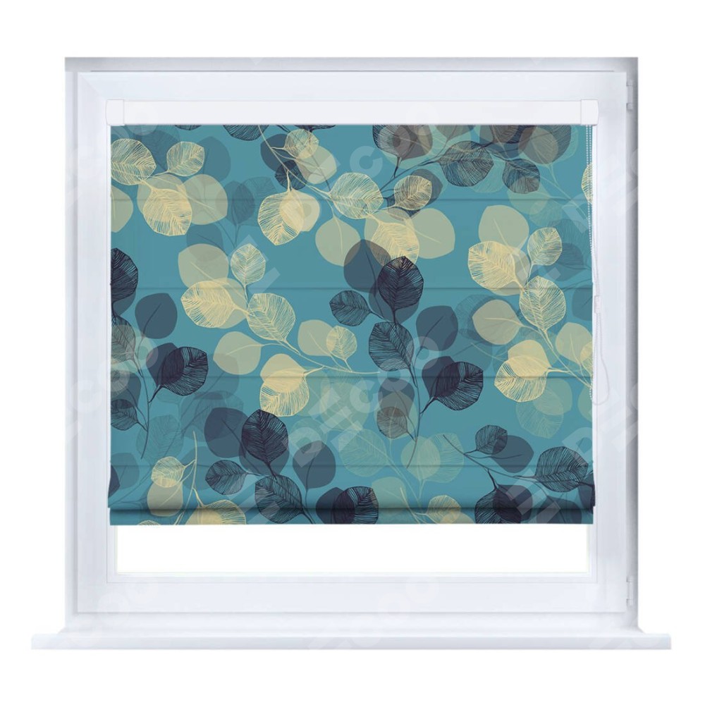 Римская штора производителя «Cortin», устанавливается на створку окна, пошита из ткани блэкаут с нанесением сублимационной печати «Листья в небе». Штора шьётся по индивидуальным размерам, для данного типа римской шторы возможная ширина от 35 до 150 см., высота до 250 см.