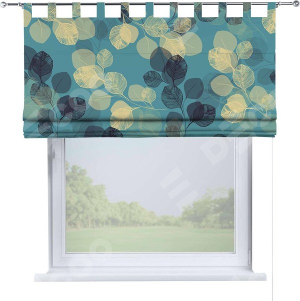 Римская штора производителя «Cortin», используется для проёма, пошита из ткани блэкаут с нанесением сублимационной печати «Листья в небе». Данная модель пошита на петлях, комплектуется на выбор круглым карнизом и подходит для монтажа на стену. Римская штора на петлях имеет простую систему регулировки высоты, отличительным преимуществом данной модели является простой способ монтажа. Достаточно повесить ее на трубу и штора готова!