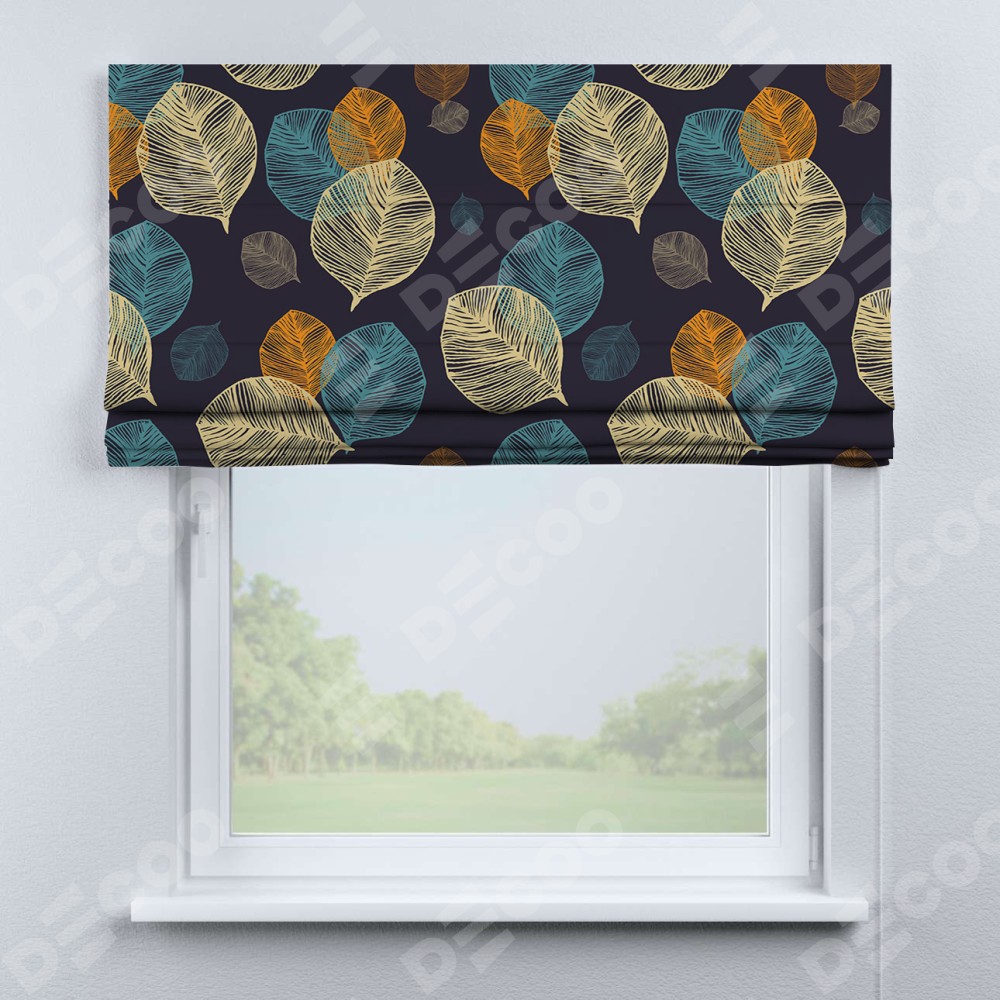 Римская штора «Кортин» для проема «Листья в ночи»