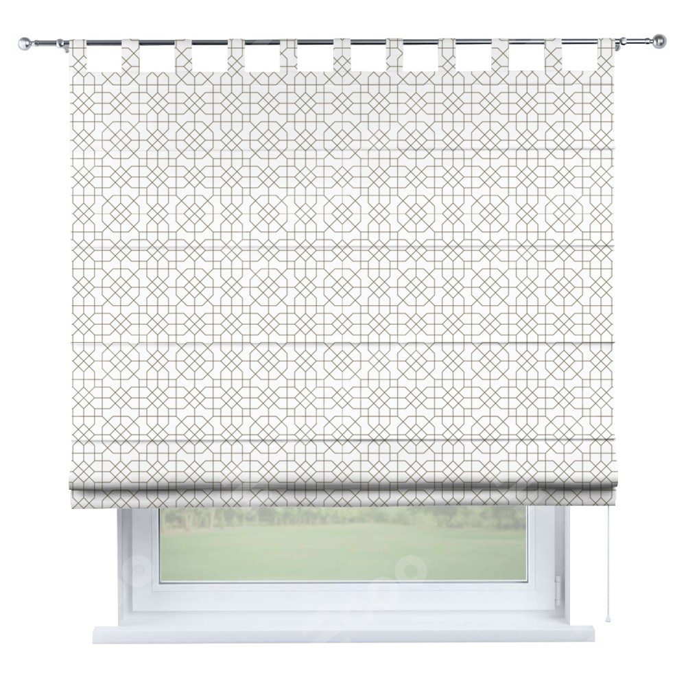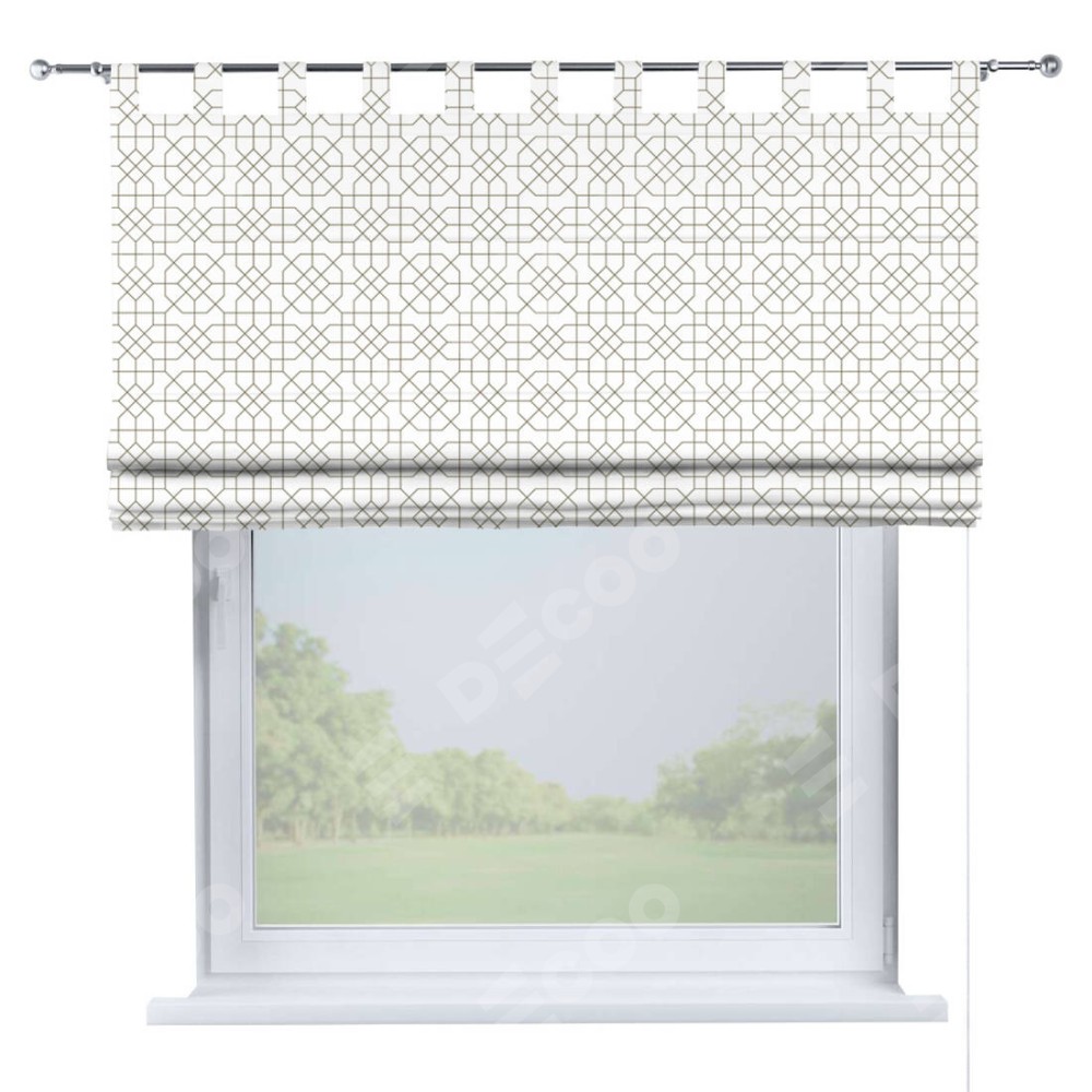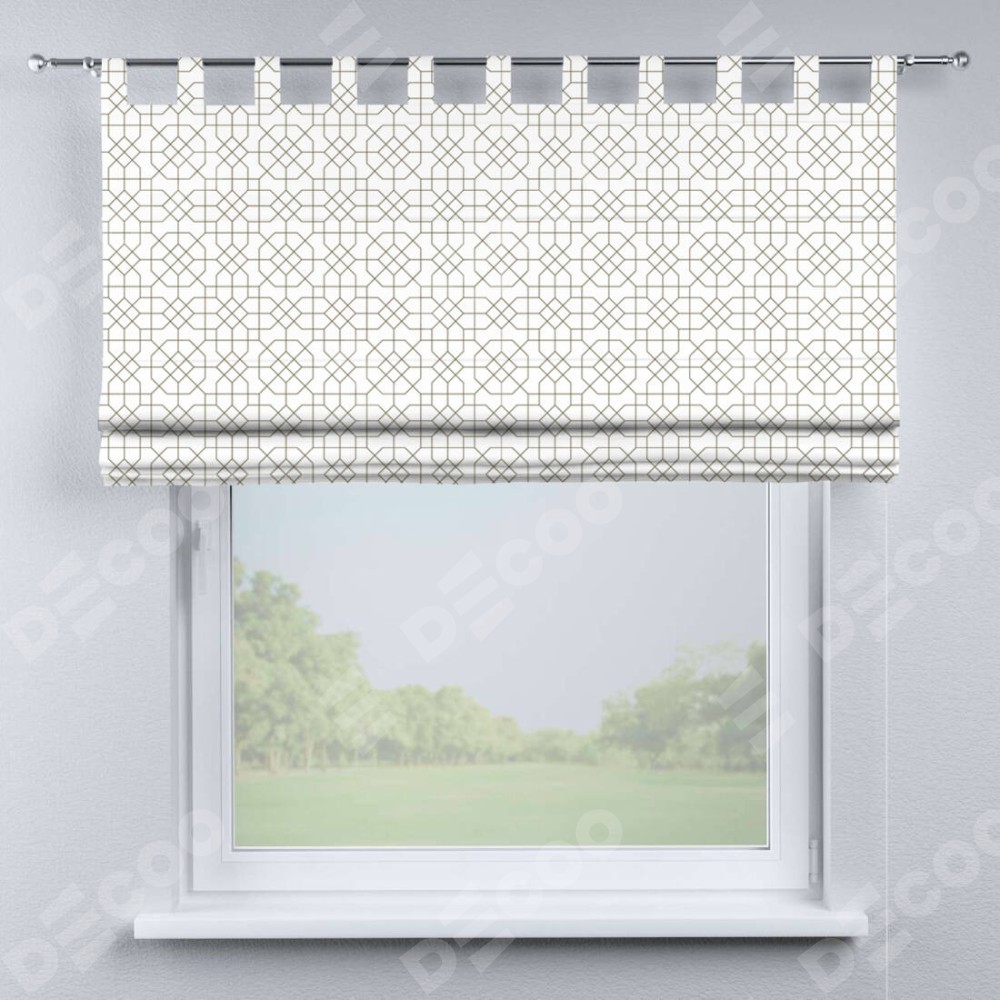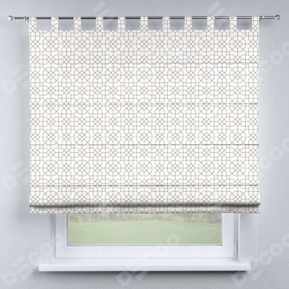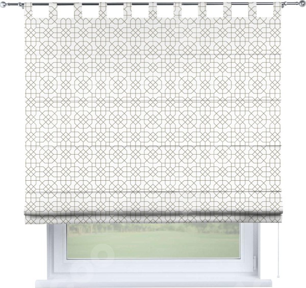 Римская штора производителя «Cortin», используется для проёма, пошита из ткани блэкаут с нанесением сублимационной печати «Орнамент из тонких линий». Данная модель пошита на петлях, комплектуется на выбор круглым карнизом и подходит для монтажа на стену. Римская штора на петлях имеет простую систему регулировки высоты, отличительным преимуществом данной модели является простой способ монтажа. Достаточно повесить ее на трубу и штора готова!