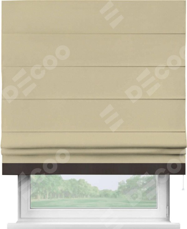 Римская штора производителя «Cortin», используется для проёма, пошита из ткани блэкаут однотонный кофейный, артикул ткани 13130. Отделка шторы кантом «Джестер», ткань для канта используется из блэкаута однотонного разной расцветки на выбор. Имеет универсальный механизм и подходит для монтажа: на потолок, на стену и в нишу.