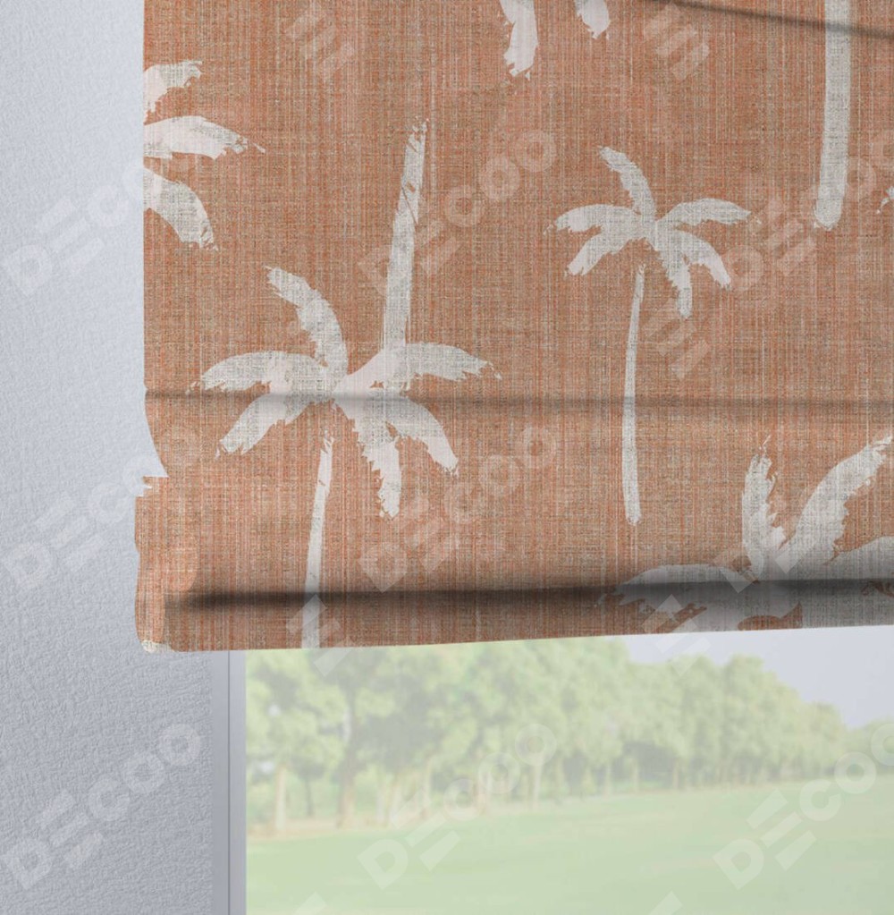 Римская штора производителя «Cortin», используется для проёма, пошита из ткани блэкаут с нанесением сублимационной печати «Пальмы на закате». Данная модель пошита на петлях, комплектуется на выбор круглым карнизом и подходит для монтажа на стену. Римская штора на петлях имеет простую систему регулировки высоты, отличительным преимуществом данной модели является простой способ монтажа. Достаточно повесить ее на трубу и штора готова!