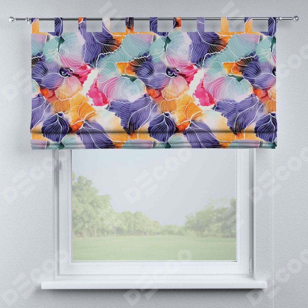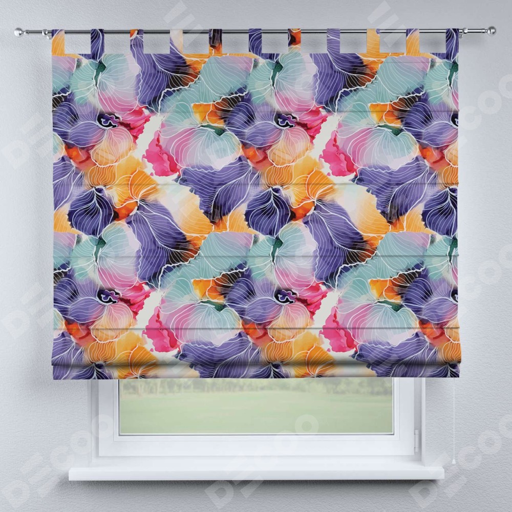 Римская штора производителя «Cortin», используется для проёма, пошита из ткани блэкаут с нанесением сублимационной печати «Роскошные ирисы». Данная модель пошита на петлях, комплектуется на выбор круглым карнизом и подходит для монтажа на стену. Римская штора на петлях имеет простую систему регулировки высоты, отличительным преимуществом данной модели является простой способ монтажа. Достаточно повесить ее на трубу и штора готова!