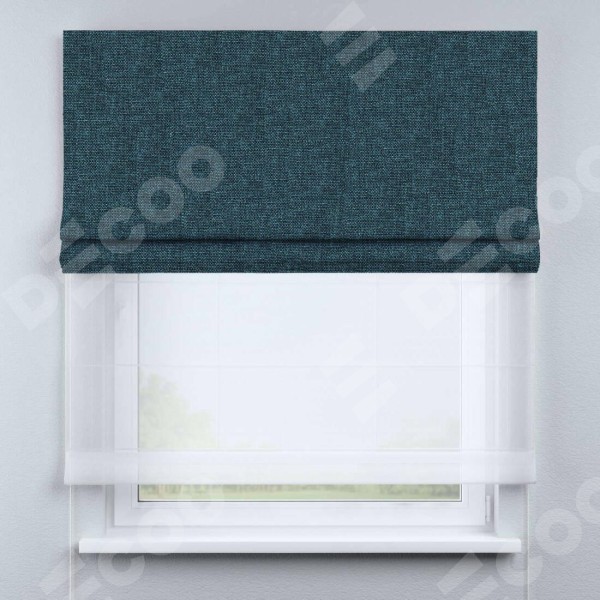 Римская штора «Кортин» день-ночь, ткань лён кашемир синий
