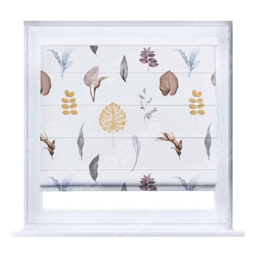 Римская штора производителя «Cortin», устанавливается на створку окна, пошита из ткани блэкаут с нанесением сублимационной печати «Осенний коллаж». Штора шьётся по индивидуальным размерам, для данного типа римской шторы возможная ширина от 35 до 150 см., высота до 250 см.